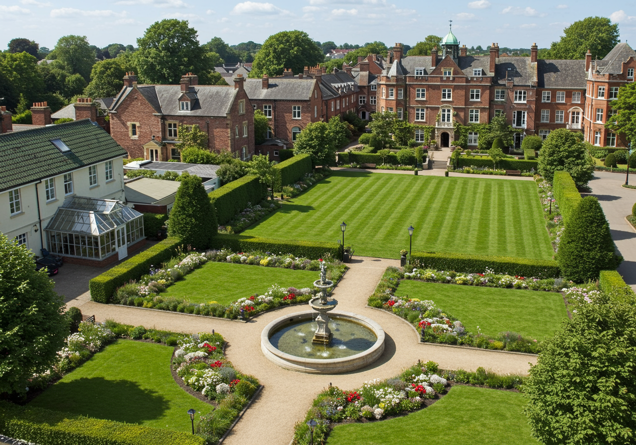 The main house, boasting 7 bedrooms, 4 full baths, and 2 half baths, is complemented by a 1,303 square foot carriage house with 2 bedrooms and 2 full baths. A newly constructed Alitex greenhouse adds a modern touch to the estate. The interior is a showcase of luxury, with a wood-clad entry foyer, six fireplaces, a grand ballroom for lavish gatherings, a game room for leisure, and a chef’s kitchen designed for culinary excellence. The exterior is equally impressive, featuring a stately motor court with a fountain, surrounded by meticulously landscaped grounds.